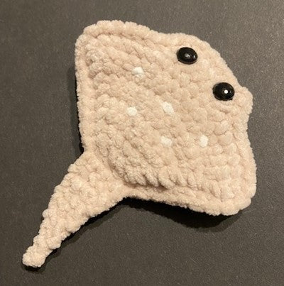 Hand-crocheted flapper skate. 13.5cm x 11.5cm in size. Not suitable for babies.
