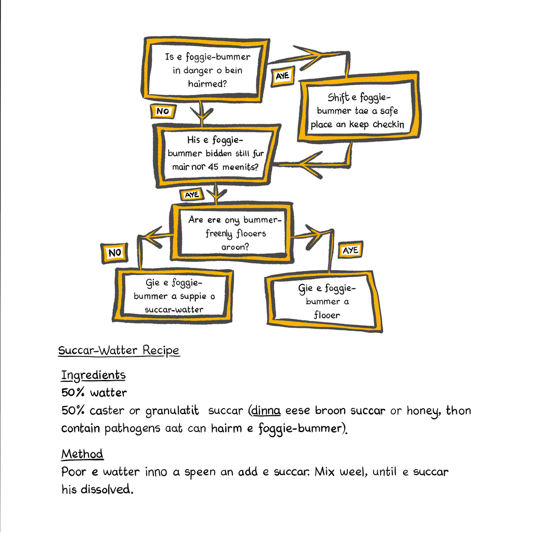 We're fair trickit tae say aat Foggie-Bummer Rescue his bin nominated in e Best Bairns' Beuk category at e Scots Language Awards 2025. It's a poem aat tells e tale o a wee quine fa rescues a foonert foggie-bummer. E poem wis rinner-up in e Buchan Heritage Society poetry competition in 2022 an noo Aaron Gale his addit his bonnie picturs tae turn it intae a braw beuk fur bairns. It his a wee section on foo tae help foonert foggie-bummers an a glossary tae help fowk new tae e Doric.