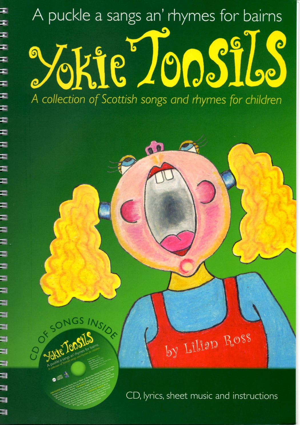 Yokie Tonsils is a braw collection o rhymes an sangs in Scots. E beuk contains lyrics, sheet music, a CD an instructions fur aa e rhymes, sangs, circle games, baa games an skippin rhymes aat hiv bin speecially pickit tae suit primary aged bairns. It wis designed tae be a teachin resource bi Lilian Ross fae Buchan. She “passes on” a hantle o sangs aat fowk eesed tae sing in e past bit noo are hard tae find.